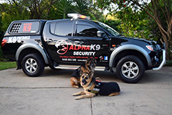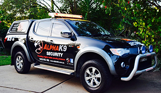 Alpha k9 mobile patrols are a patrol service with a difference. All patrol units have a certified security k9 on board as well as advanced first aid and patrol technology.